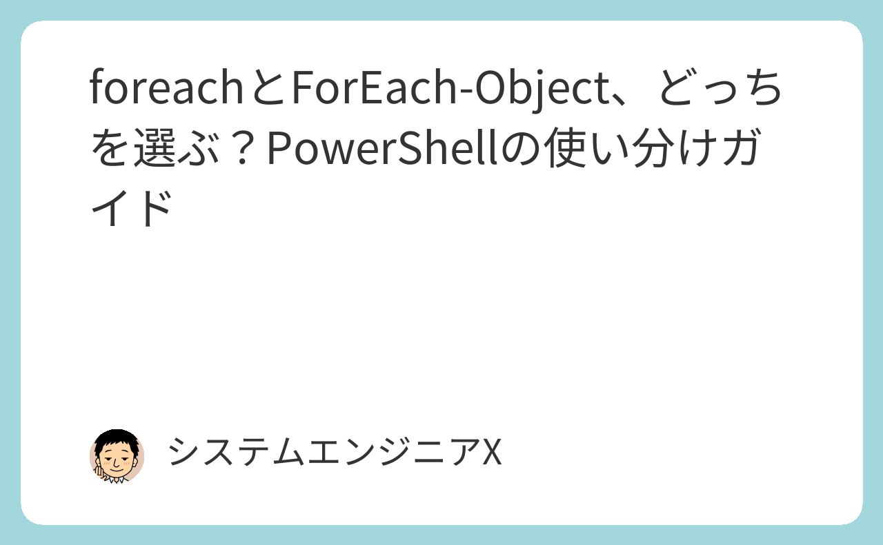 「配列に対して処理を繰り返すならforeach」「パイプラインや大量データ処理ならForEach-Object」という基本の考え方を押さえて、状況に応じて柔軟に使い分けましょう。